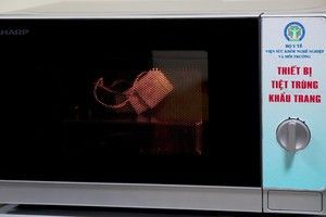 Bước 2: Cho khẩu trang vào lò vi sóng để mặt được xịt dung dịch sát khuẩn hướng lên trên, đặt lò ở chế độ chỉ sóng viba (không bật tính năng nướng) ở công suất 800W và quay trong vòng 1 phút.