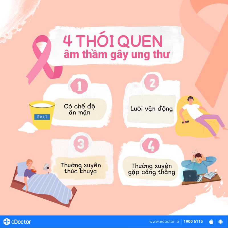 Ung thư là một trong những căn bệnh có tỉ lệ mắc cao nhất tại Việt Nam. Bệnh thường ít hoặc không có biểu hiện rõ ràng ở giai đoạn đầu và tiến triển âm thầm. Có rất nhiều nguyên nhân dẫn tới ung thư, nhiều trong số đó là những thói quen hàng ngày mà bạn không ngờ tới.