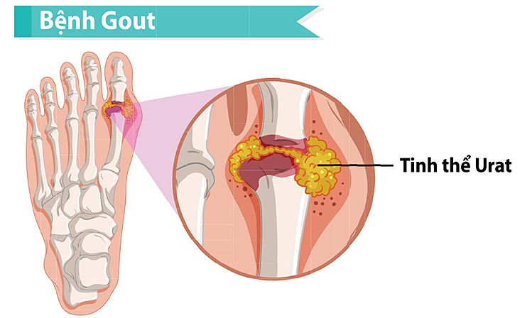 Acid uric tăng quá cao trong máu và đọng lại hình thành nên các tinh thể Urat có đầu sắc nhọn, tập trung tại khớp, tổ chức dưới da gây viêm, sưng và đau đớn cho bệnh nhân.