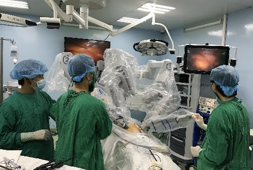 Sáng 20/3, bệnh nhân 54 tuổi được bác sĩ Bệnh viện Bình Dân mổ cắt 2/3 dạ dày, nạo vét hạch triệt để bằng robot. Bác sĩ chuyên khoa 2 Hoàng Vĩnh Chúc, Trưởng Khoa Ngoại Tiêu hóa Bệnh viện Bình Dân cho biết, bệnh nhân ngụ Đồng Tháp ăn không ngon miệng, khó tiêu, chẩn đoán bị ung thư hang vị giai đoạn 3. Đây là ung thư phổ biến nhất trong các loại ung thư dạ dày. Sáng 20/3, các bác sĩ đã trải qua 4 giờ phẫu thuật cắt 2/3 dạ dày cho bệnh nhân đồng thời nạo vét hạch di căn. Phẫu thuật bằng robot cho phép bác sĩ bóc tách các hạch ung thư triệt để, đỡ mất máu, hạn chế nguy cơ di căn, tái phát ung thư. Bệnh nhân được vận động sớm để ruột hoạt động lại, tránh dính ruột về sau.