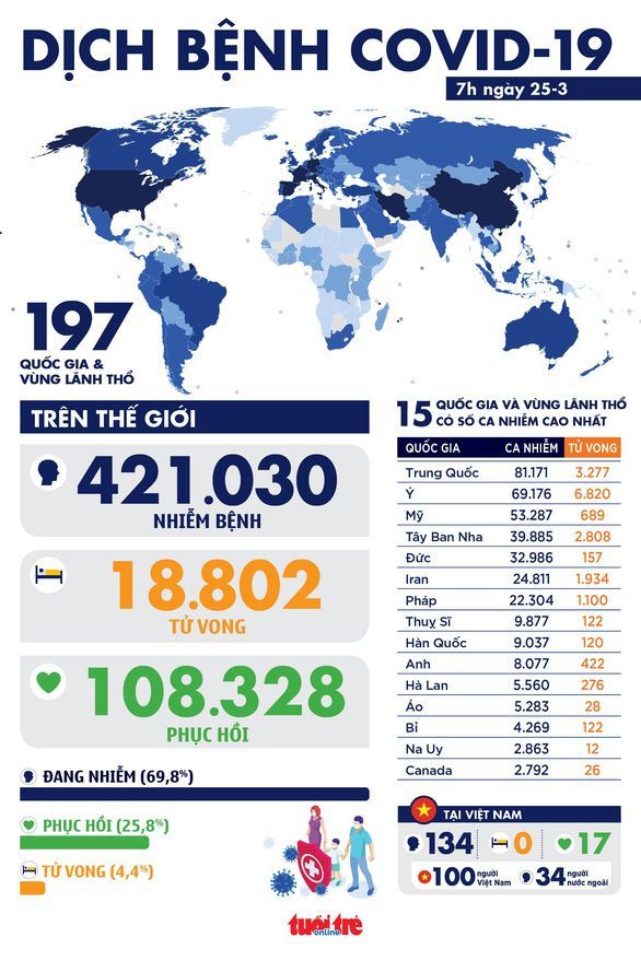Như vậy tính đến thời điểm hiện tại, Việt Nam đã ghi nhận 134 ca mắc COVID-19, trong đó có 17 ca đã khỏi bệnh, chưa ghi nhận trường hợp tử vong.