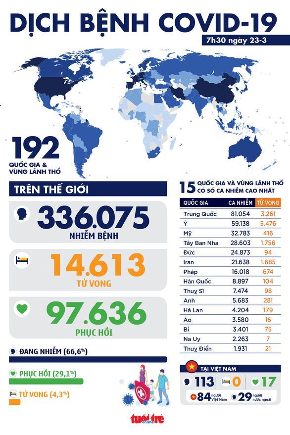 Như vậy tính đến thời điểm này, Việt Nam đã ghi nhận 113 ca mắc COVID-19. Có 17 trường hợp đã khỏi bệnh, chưa có trường hợp tử vong.