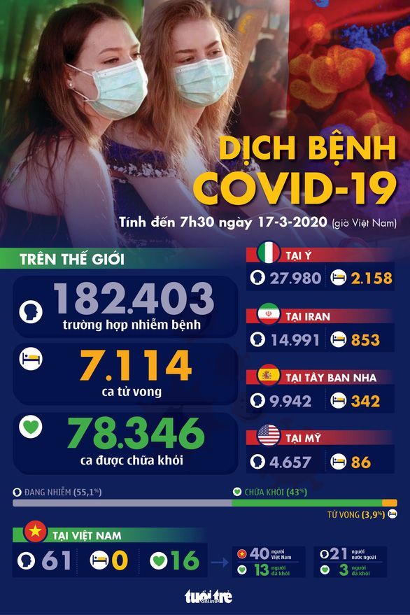 Số ca tử vong mới tại Trung Quốc trong ngày 16-3 là 13 trường hợp, giảm 1 ca so với ngày 15-3. Tổng số ca nhiễm tính trên toàn Trung Quốc đại lục là 80.881, trong đó có 3.226 trường hợp tử vong, 68.688 người đã được cho xuất viện.