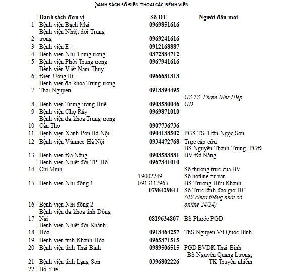 Đường dây nóng 22 bệnh viện tiếp nhận thông tin dịch bệnh.
