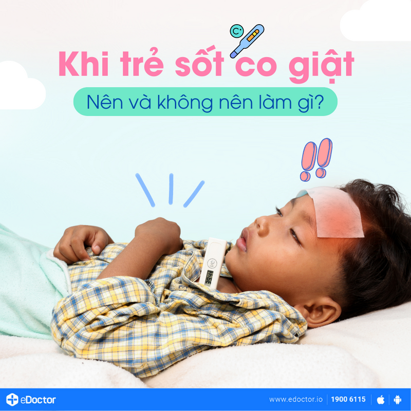 -Nếu cơn co giật ngắn hơn 5 phút, nên cho trẻ đi khám bác sĩ sau cơn co giật, để đánh giá và tầm soát các bệnh nguy hiểm có thể gây ra triệu chứng sốt và triệu chứng co giật như viêm não, viêm màng não…