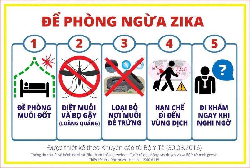 2. KHUYẾN CÁO CHO PHỤ NỮ ĐANG CÓ HOẶC DỰ ĐỊNH CÓ THAI - Phụ nữ có thai cần áp dụng các biện pháp phòng chống muỗi đốt để tránh lây truyền vi rút Zika và khám thai định kỳ. - Phụ nữ có thai hoặc dự định có thai không nên đi đến vùng dịch khi không thực sự cần thiết. - Đối với phụ nữ có thai tại vùng dịch hoặc/và đi về từ vùng có dịch nếu có triệu chứng như sốt, phát ban hoặc các dấu hiệu khác của bệnh cần đến cơ sở y tế để chủ động khai báo về tiền sử đi lại và được khám, tư vấn. - Phụ nữ mang thai 3 tháng đầu đang sinh sống hoặc đã từng đến vùng có dịch mà có sốt hoặc phát ban và có ít nhất một trong các triệu chứng như đau mỏi cơ/khớp, viêm kết mạc mắt cần xét nghiệm để phát hiện vi rút Zika. - Vợ, chồng, bạn tình đang sống hoặc trở về từ vùng dịch nếu có ý định mang thai cần đến cơ sở y tế để khám, tư vấn trước khi quyết định mang thai. - Người từ vùng dịch trở về cần sử dụng bao cao su khi quan hệ tình dục hoặc không quan hệ tình dục với vợ (bạn tình) trong quá trình mang thai để tránh lây truyền vi rút Zika cho mẹ và con. Danh sách địa phương có dịch bệnh do vi rút Zika được cập nhật trên Website Cục Y tế dự phòng: vncdc.gov.vn. Có thắc mắc gì thêm, bạn có thể hỏi bác sĩ thông qua ứng dụng eDoctor! Chúc các bạn luôn vui khỏe!!!