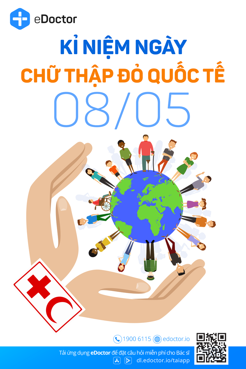 - Nhân ngày Hội chữ thập đỏ thế giới 08/05/2020, eDoctor xin gửi lời cảm ơn đến các tình nguyện viên trên thế giới, cảm ơn các bạn vì đã và đang góp phần mang đến sức khỏe và hạnh phúc cho nhân loại.