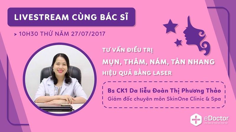 Bạn đang bị mụn, thâm, nám, tàn nhang và đang tìm phương pháp phù hợp để điều trị dứt điểm? Đừng lo lắng, vào 10H30 Thứ Năm 27/07/2017 cùng gặp gỡ Bác sĩ CK 1 Da liễu Đoàn Thị Phương Thảo - Giám đốc chuyên môn SkinOne Clinic & Spa để lắng nghe những chia sẻ bổ ích của bác sĩ về cách chăm sóc và điều trị da bằng công nghệ cao lazer.