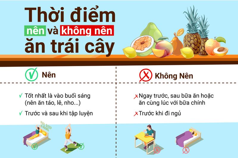Do hàm lượng fructose cao, tốt nhất bạn nên ăn trái cây vào buổi sáng sau khi cơ thể nghỉ ngơi vào ban đêm và cần bổ sung chất dinh dưỡng cho một ngày làm việc tiếp theo.