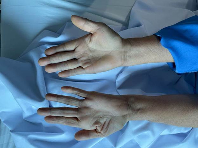 Bà Võ Thị Lại (58 tuổi, Bình Thuận) bị teo bàn tay trái từ năm 2018, ngày càng yếu ớt, tê bì, đau nhức, nhất là vùng ngón tay cái và ngón út. Bà từng được chẩn đoán Hội chứng ống cổ tay và đã 2 lần phẫu thuật nhưng không cải thiện.
