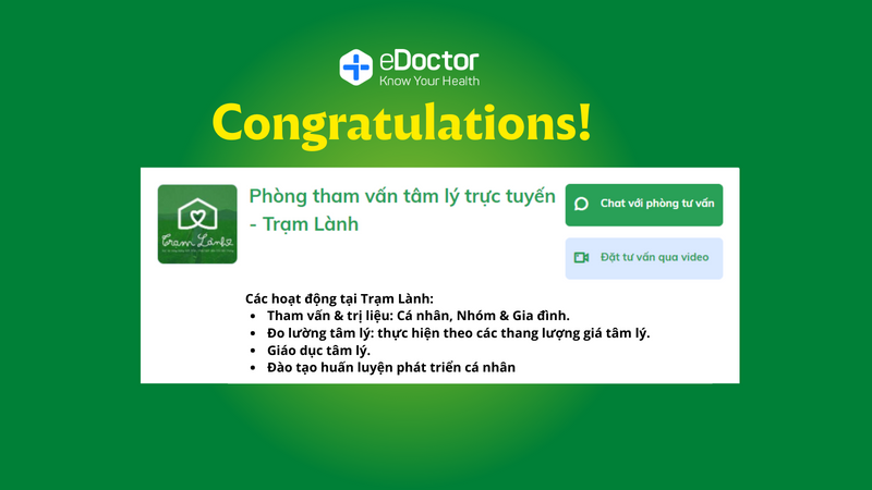 eDoctor xin trân trọng giới thiệu đến cả nhà một thành viên mới của Phòng khám trực tuyến eDoctor đó là “Phòng tham vấn tâm lý trực tuyến - Trạm Lành”