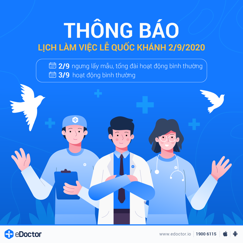 eDoctor thông báo đến Quý khách lịch nghỉ lễ 2/9 của eDoctor như sau: