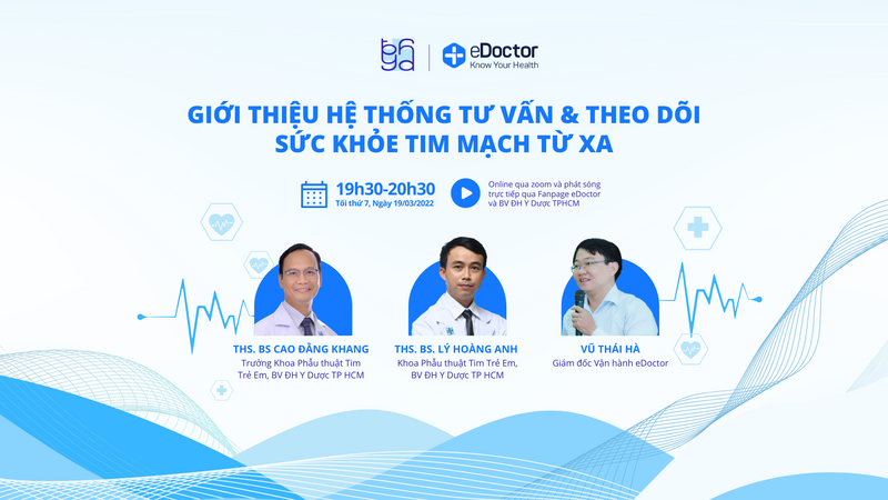 Trong buổi hội thảo trực tuyến này, eDoctor cam kết triển khai hệ thống chăm sóc sức khỏe từ xa để các bác sĩ dễ dàng tư vấn, theo dõi và chăm sóc sức khỏe cho các bệnh nhân mắc bệnh tim mạch. Khoa Phẫu thuật Tim trẻ em BV ĐHYD sẽ tổ chức đội ngũ bác sĩ chuyên môn luôn sẵn sàng tư vấn cho các bệnh nhân đang gặp các vấn đề về tim mạch.
