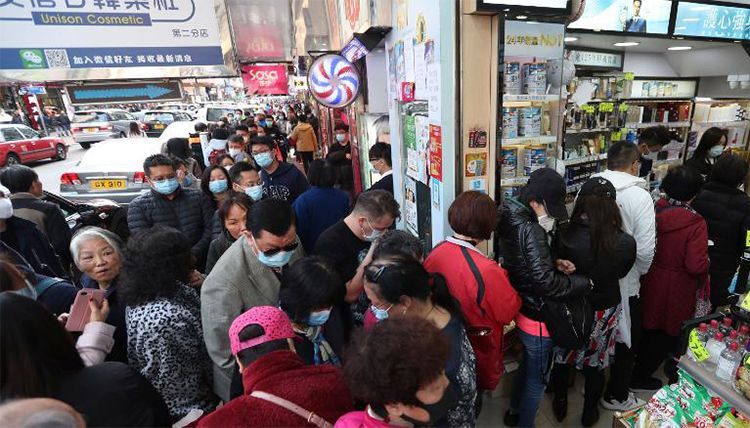 Người dân xếp hàng mua khẩu trang tại một cửa hàng ở Hong Kong hôm qua. Ảnh: AP |